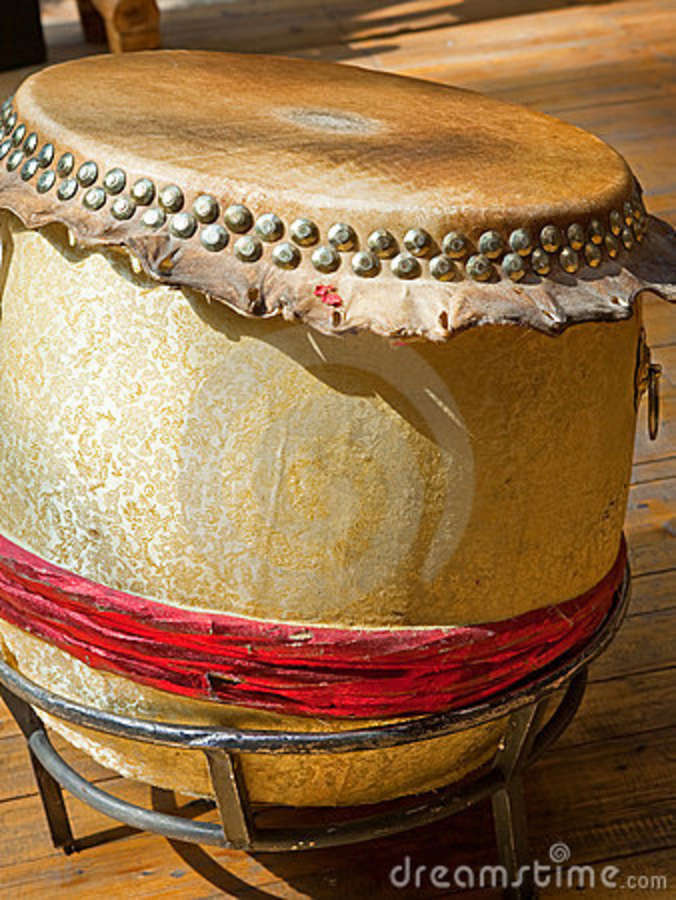 g) Instrumentos de cuero de animal: Se destaca el tambor o Ku, que es no de los mas antiguos en China. El tambor tiene muchas funciones, siendo utilizado como marcador de ritmo para danzas en tiempo de paz, y como instrumento indispensable tiempos de guerra.